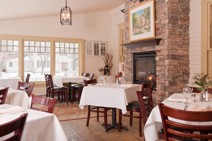 Get the true inn experience: wine, ale, crackling fires, cozy rooms. Dine in the friendly, casual Pub, or the more formal dining room; terrace seating is available in fine weather. The menu features Vermont produce and game, and the housemade ale makes star appearances in many of the dishes. The wine list is one of the largest in the state—there’s a cellar dining room with a fireplace for private parties.